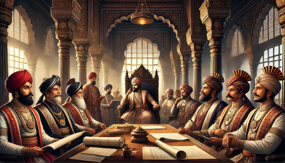 Shivaji’s Ashta Pradhan Mandal (Council of Eight Ministers) was a pioneering approach to administration. This council divided responsibilities among eight key officials, each with distinct roles, ensuring accountability and efficiency.